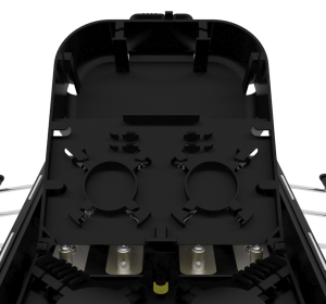 · Contêm uma bandeja para acomodação de Splitter ou Emendas de fibra óptica;